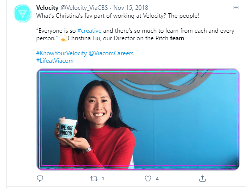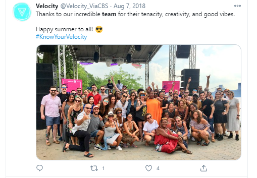 Get the word out about Velocity's work, awards, and culture via Instagram, Twitter, and LinkedIn.